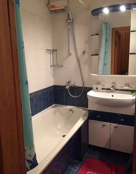 Санузел совмещенный, оборудован ванной и стиральной машиной. Лоджия застеклена, что позволяет использовать ее как дополнительное пространство.