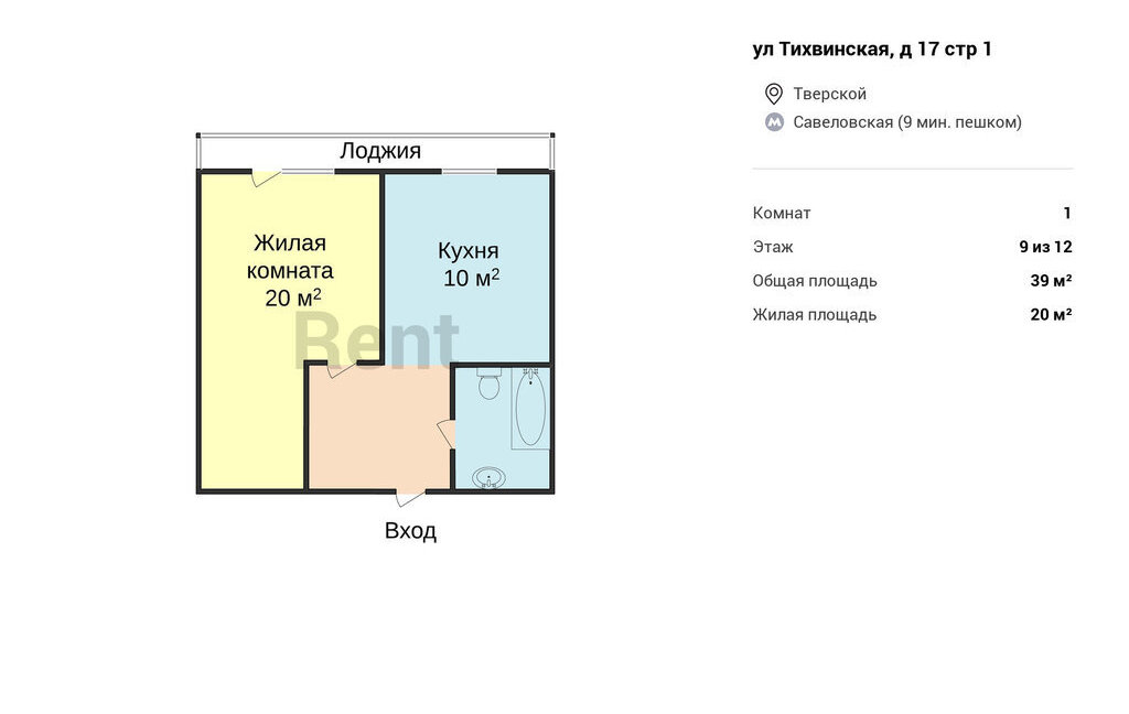 Предлагается 1-комнатная квартира общей площадью 39 м² недалеко от станции метро "Савеловская". Для комфортного проживания в наличии имеется вся необходимая мебель. Из дополнительных преимуществ - наличие лоджии. Окна обращены во двор, обеспечивая тишину.