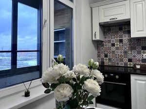 Просторная кухня площадью 8.1 кв. м. Квартира оборудована современной и новой техникой и мебелью, вся мебель и техника остается новым хозяевам. Встроенная кухня, холодильник, стол со стульями. В ванной комнате качественный новый ремонт, новая стиральная машина. В прихожей большой встроенный шкаф купе. В комнате двухспальная кровать и раскладной диван. Застекленная лоджия с панорамным видом.