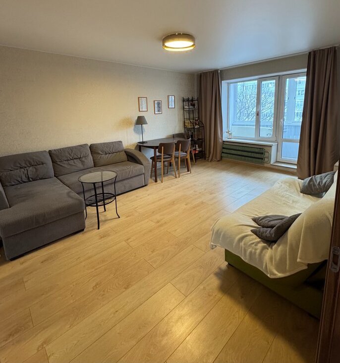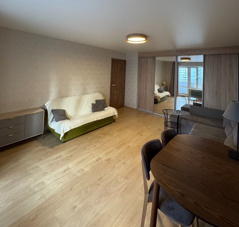 Ремонт делал в 2021 году, жил в квартире сам, сейчас состояние отличное. Большая комната, большой трапециевидный балкон. Все необходимое для проживания в квартире есть.
