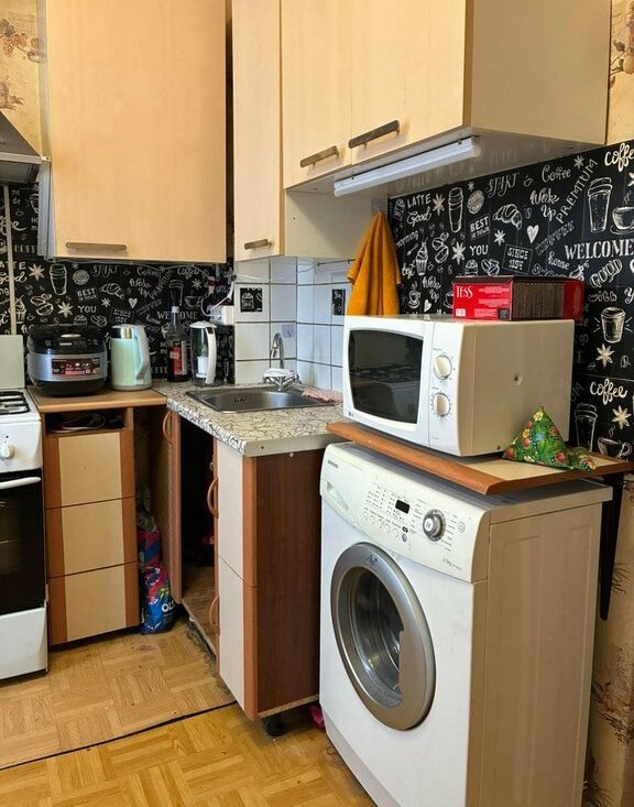 Из окон открывается вид во двор, где расположена детская площадка и открытая парковка. В подъезде есть пассажирский и грузовой лифты, а также мусоропровод. Квартира требует ремонта, но это даёт возможность создать интерьер по своему вкусу. Просторная светлая кухня , газ. Дом расположен в районе с развитой инфраструктурой, в шаговой доступности три с семи метро, что обеспечивает удобство проживания.