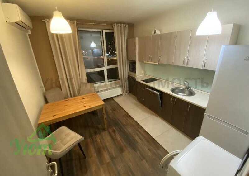 Площадь квартиры 35.9м2, квартира полностью мебелированная, санузел совмещенный, установлена душевая кабинка, на кухне установлена посудомоечная машина, в жилой комнате имеется телевизор и кондиционер. Дом монолитный,своя придомовая территория.
