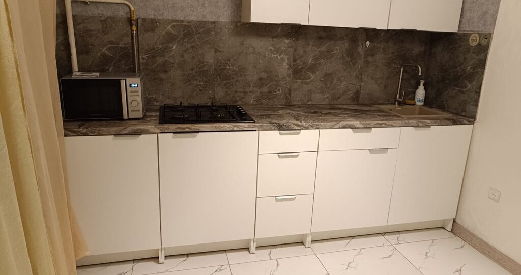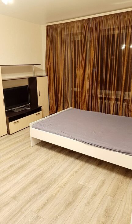 В квартире выполнен хороший ремонт, что придаёт ей свежий и аккуратный вид. Просторная комната обставлена необходимой мебелью, а на кухне есть всё для комфортного проживания. В распоряжении жильцов холодильник, телевизор и стиральная машина. Санузел совмещённый, в ванной комнате установлена ванна — идеальное место для расслабления после рабочего дня. Также имеется балкон, окна которого выходят во двор, поэтому в квартире всегда тихо и спокойно.