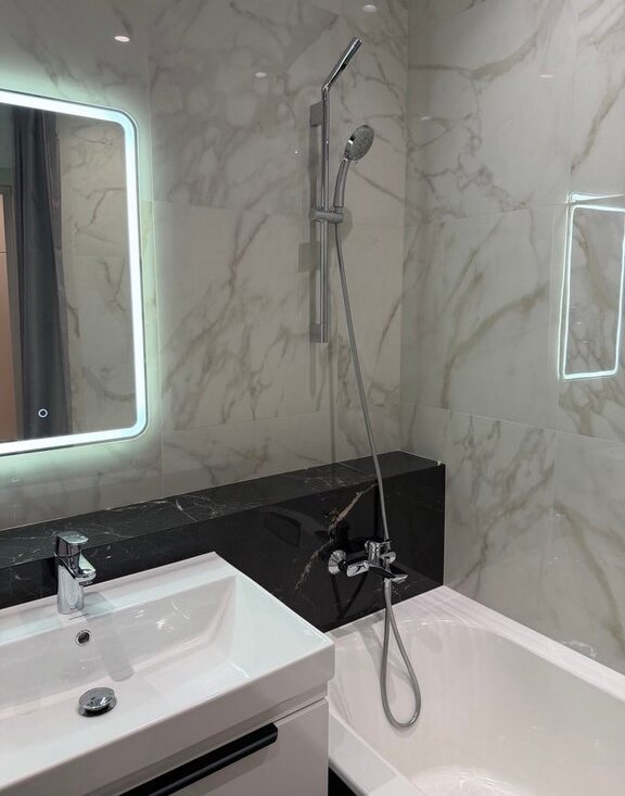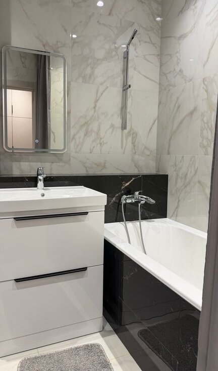 В ванной комнате установлена современная чугунная ванна Jacob Delafon. Квартира оснащена всей необходимой техникой: кондиционеры, холодильник, телевизоры в каждой комнате, посудомоечная и стиральная машины. Благодаря такому оснащению, вы сможете сразу наслаждаться новым домом без лишних забот.