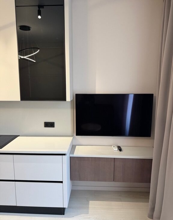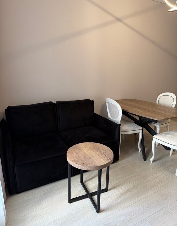 В квартире есть все необходимое для комфортного проживания. Просторная комната и кухня полностью меблированы.