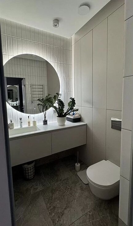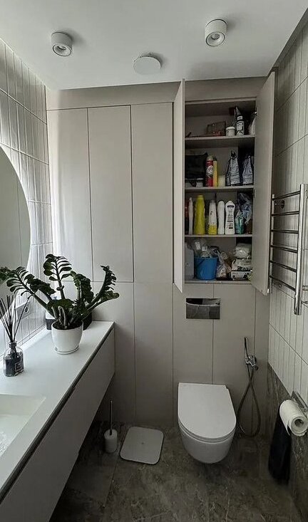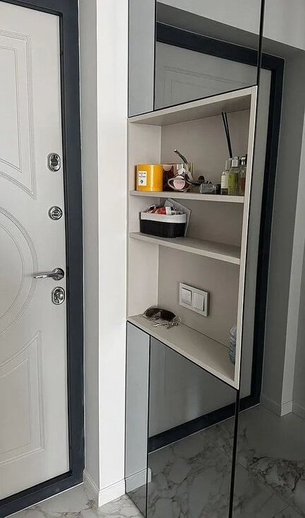 Санузел совмещенный, выполнен в современном стиле с качественной сантехникой. В прихожей предусмотрены удобные полки для хранения мелочей.
