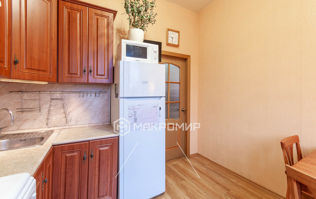 Кухня - 8 кв.м, Сан.узел с ванной – совмещен, в коридоре встроенный шкаф, имеется балкон, остеклен.