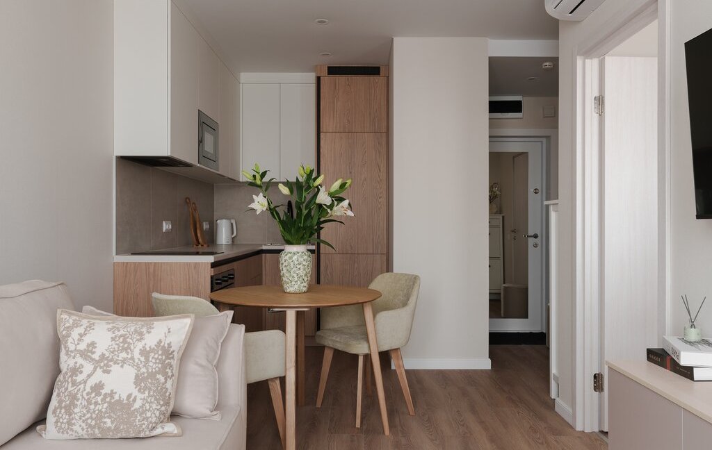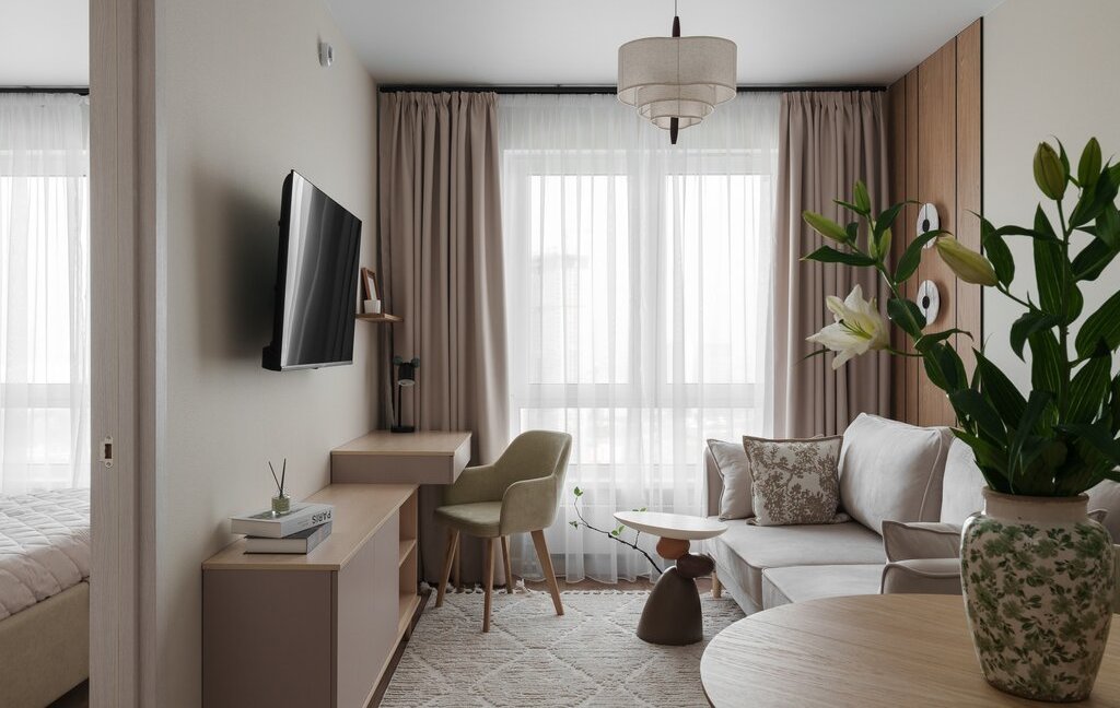 Пространство идеально подходит для одного человека или пары, которые ценят комфорт, стиль и безопасность.