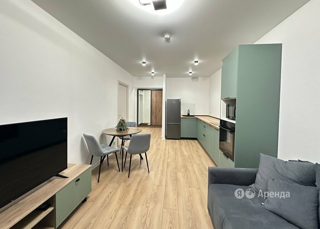 Сдаётся 1-комнатная квартира площадью 34 кв.м. с евроремонтом на 23 этаже в 33-этажном доме на срок от 11 месяцев. Из техники есть: