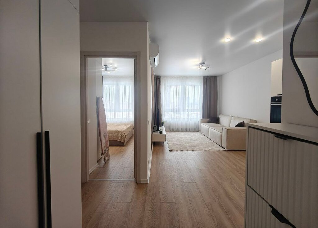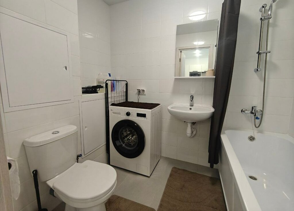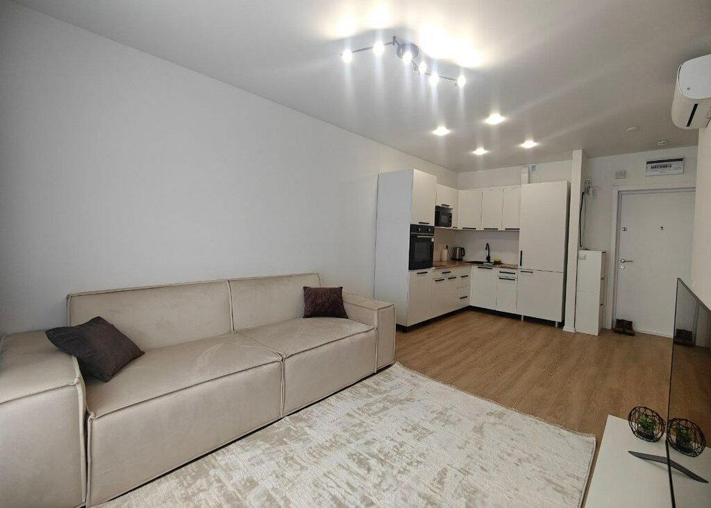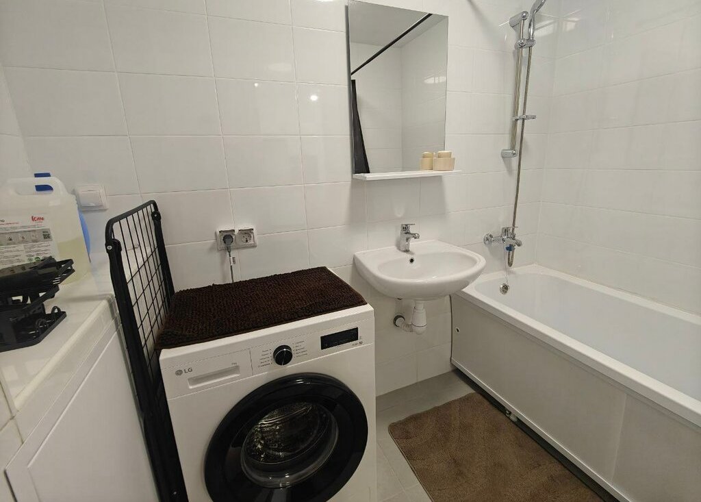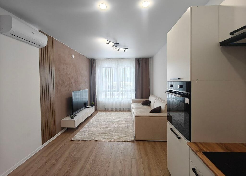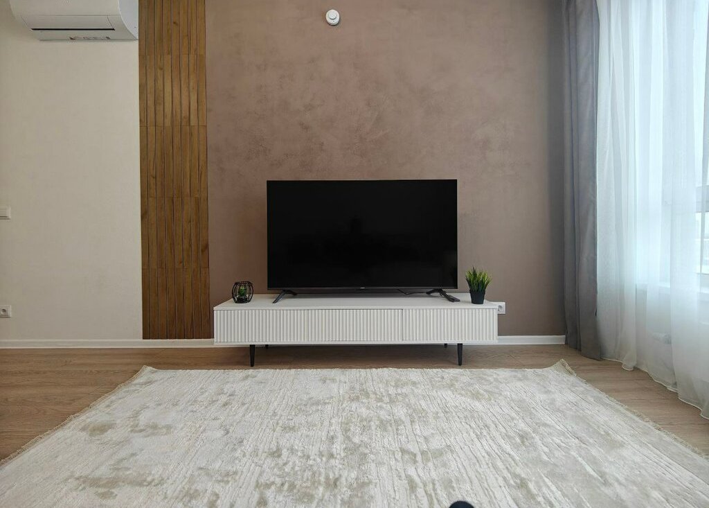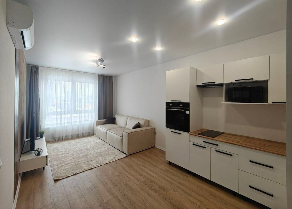 Квартира полностью обставлена и укомплектована: имеется стиральная машина, микроволновка, духовка, варочная панель, 2 кондиционера, большой телевизор со смарт-тв.