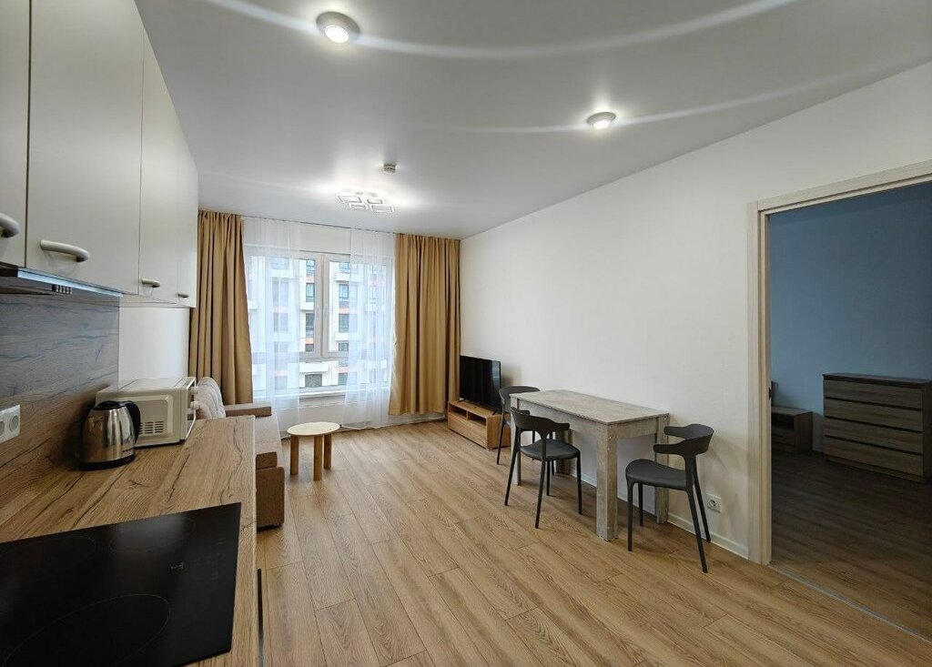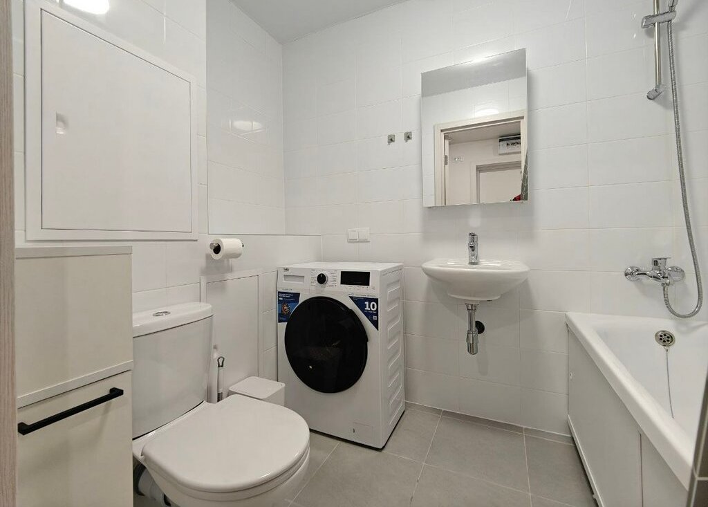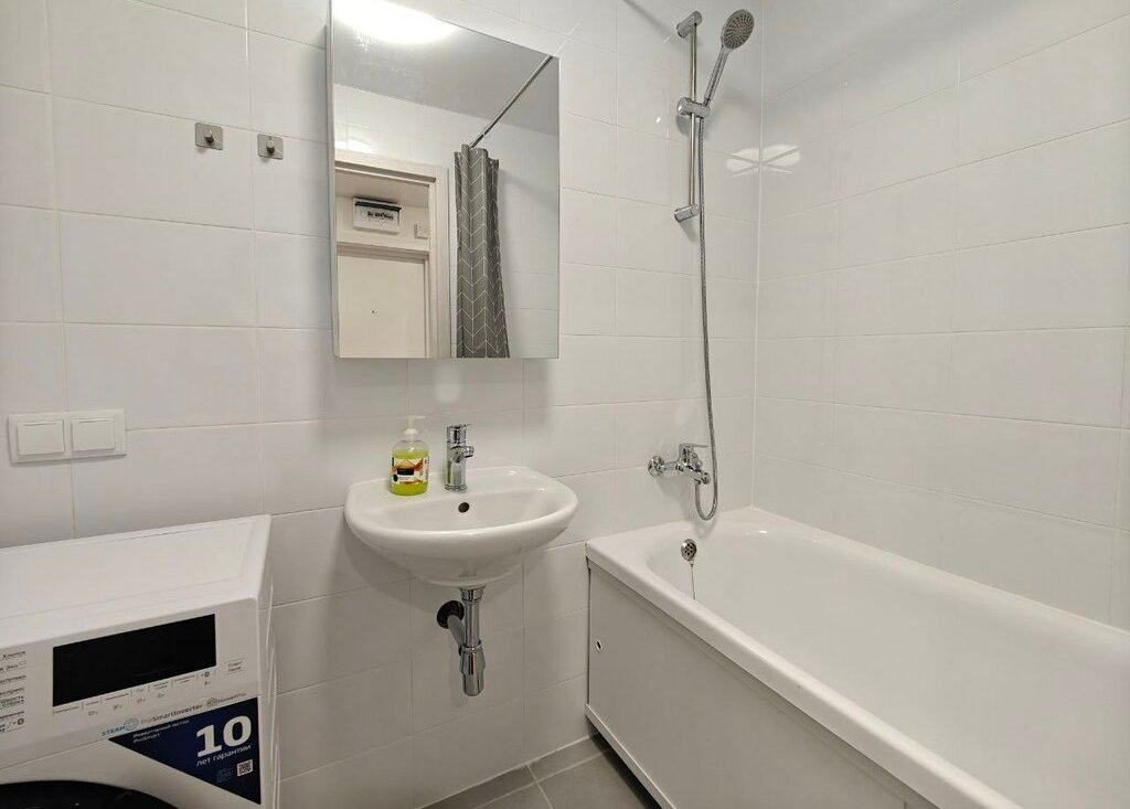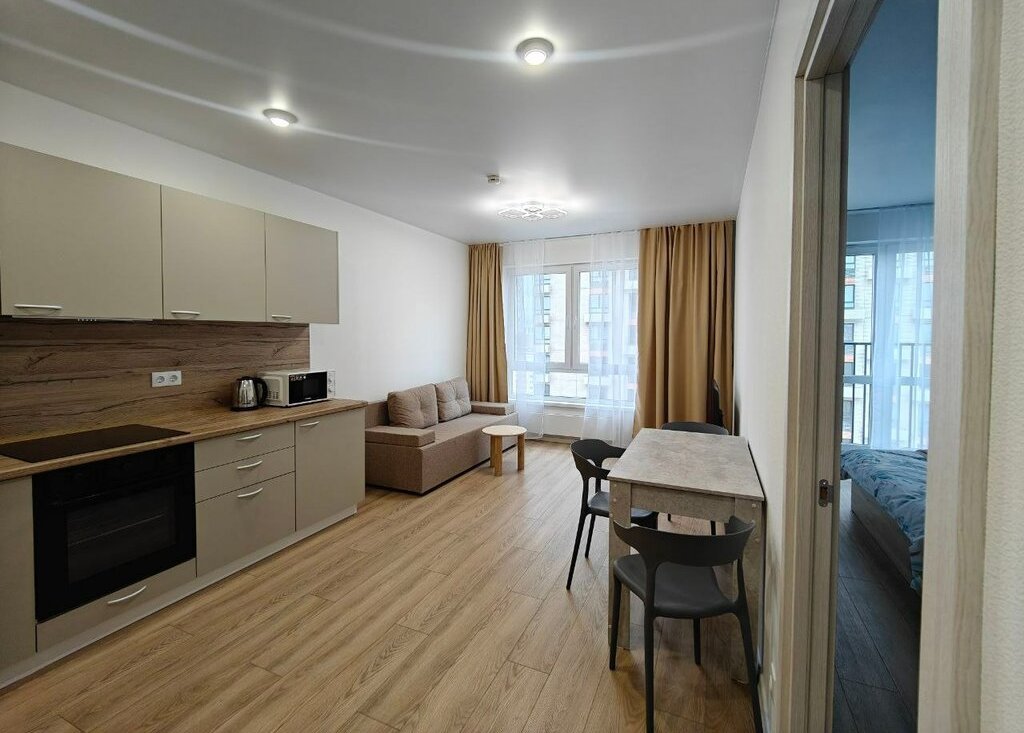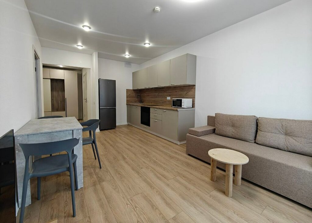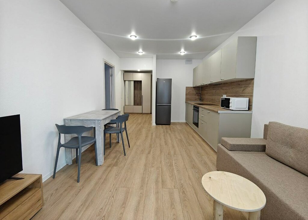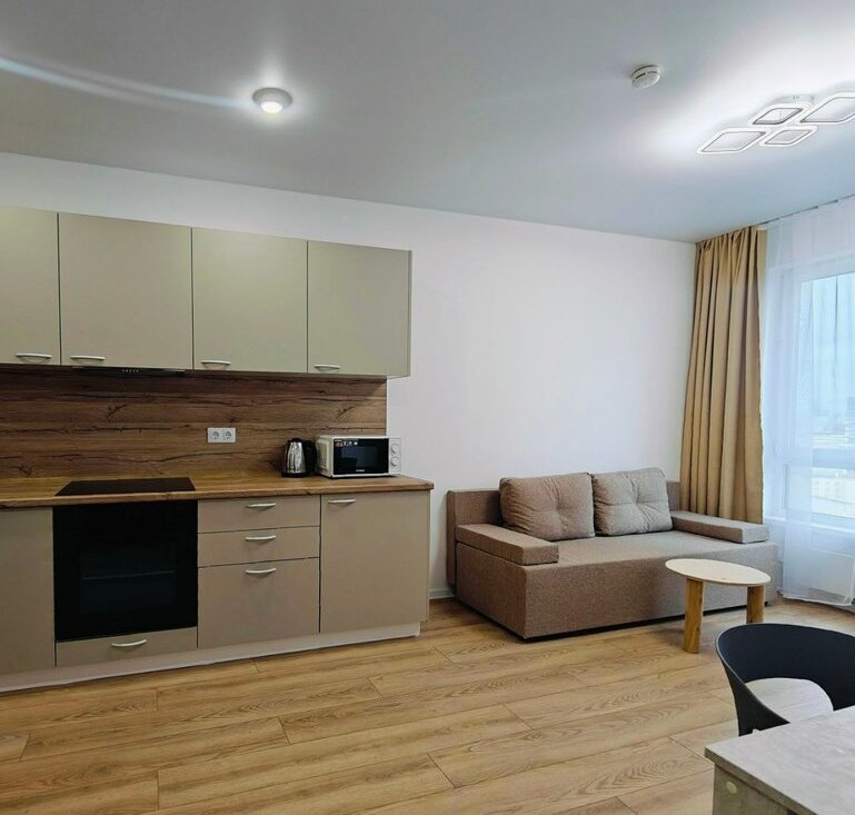 Квартира полностью обставлена и укомплектована: имеется стиральная машина, микроволновка, духовка, варочная панель, телевизор со смарт-тв. Мягкий диван установлен в гостиной,