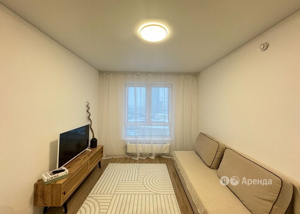 Сдаётся 1-комнатная квартира площадью 36 кв.м. с евроремонтом на 19 этаже в 33-этажном доме на срок от 11 месяцев. Из техники есть: