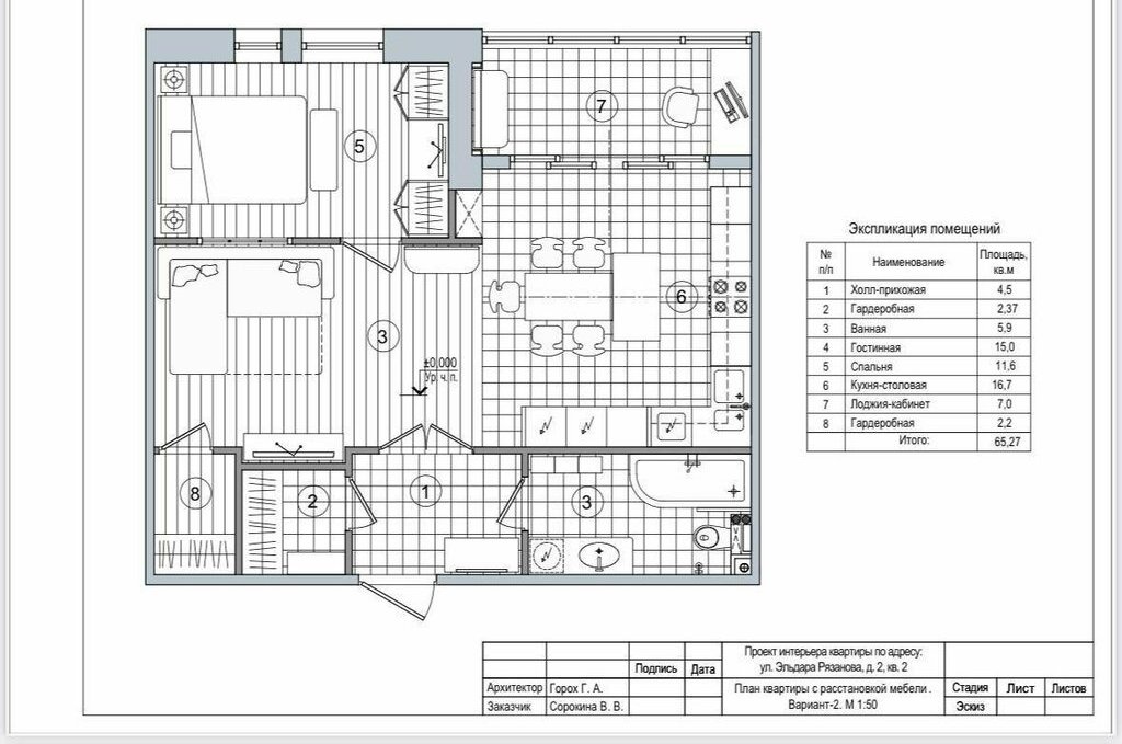 Жильё полностью укомплектовано мебелью и техникой, готово к комфортному проживанию. Планировка представляет собой евро-формат: просторная кухня-гостиная с выходом на лоджию, гардеробная, изолированная спальня, совмещенный с/у, гардеробная в прихожей.
