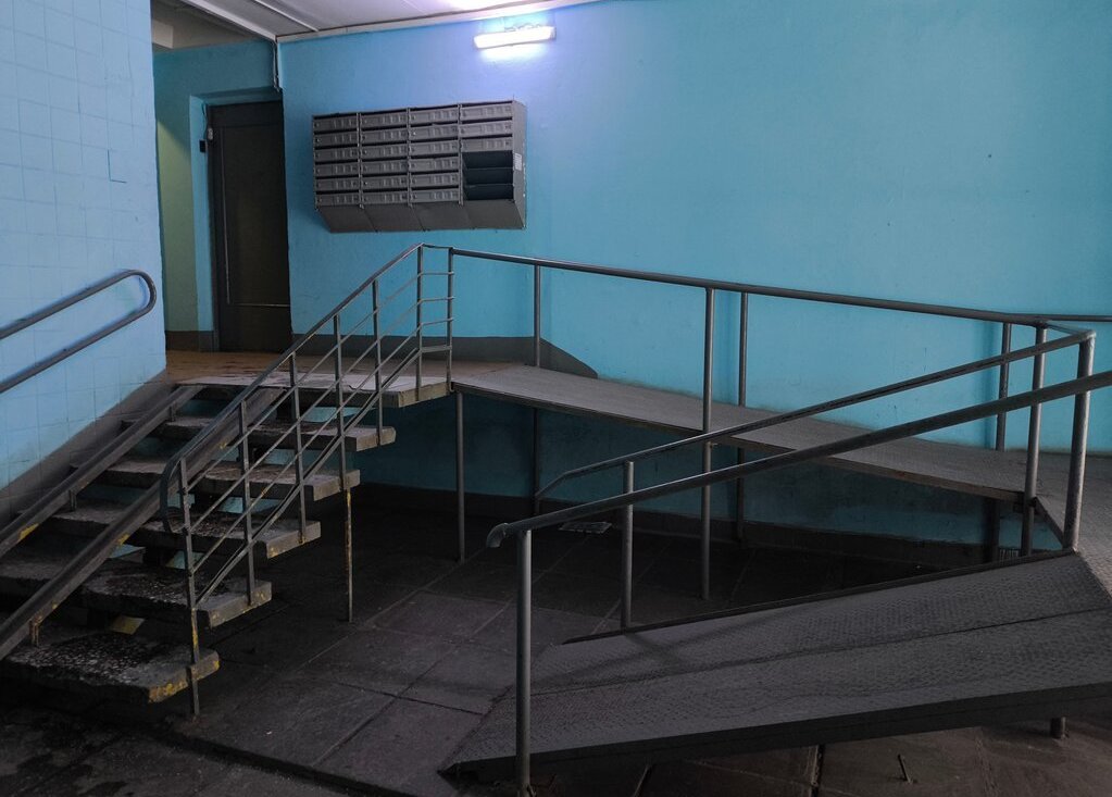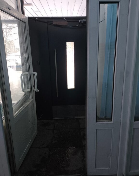 На этаже - тамбурная дверь, отделяющая квартиры на лестничной клетке.