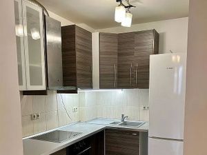 Квартира с евроремонтом. Встроенный кухонный гарнитур, вся бытовая техника, посудомоечная машина. В комнате угловой диван. В прихожей вместительный шкаф купе. Совмещенный санузел. Балкон не застеклен. Рядом есть охраняемая парковка.