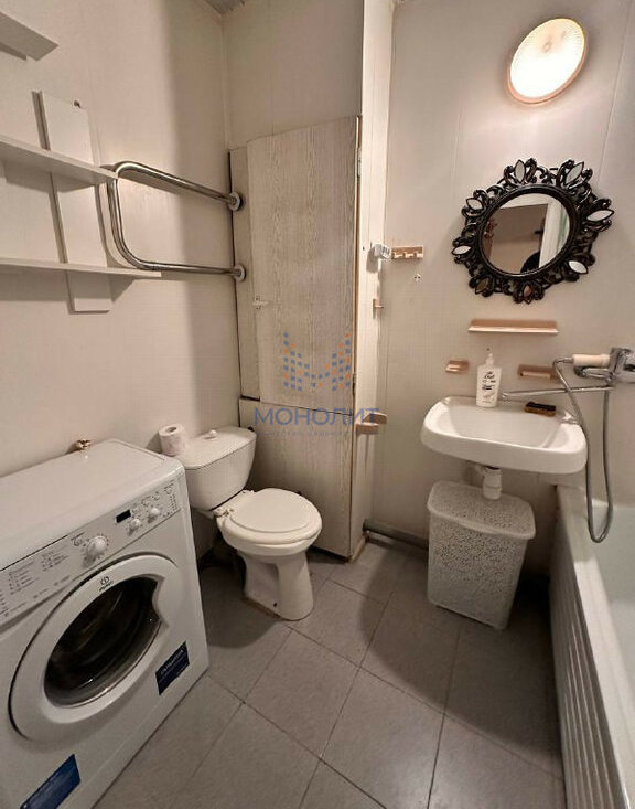 В комнате и на кухне есть необходимая мебель, а также вся техника: холодильник, и стиральная машина.