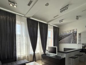 В квартире выполнен косметический ремонт. Просторная комната обставлена необходимой мебелью, есть рабочая зона, зона отдыха с телевизором и отдельно спальное место. На кухне заменена мебель, есть холодильник, микроволновая печь. На кухне выход на балкон. Высота потолков составляет 2.70 метра, окна выходят во двор, что обеспечивает тишину.