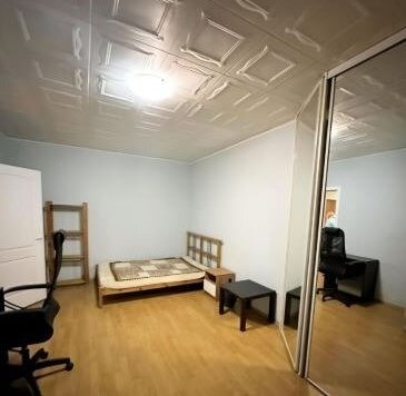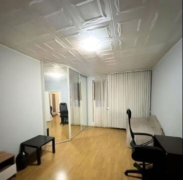 В прихожей шкаф купе с зеркалом, комод. Просторная комната площадью 20 кв. м с выходом на вместительный балкон обставлена необходимой мебелью: кровать двуспальная с матрасом, раскладывающийся диван, есть большой шкаф-купе длиною 3 метра. Письменный стол с компьютерным креслом.
