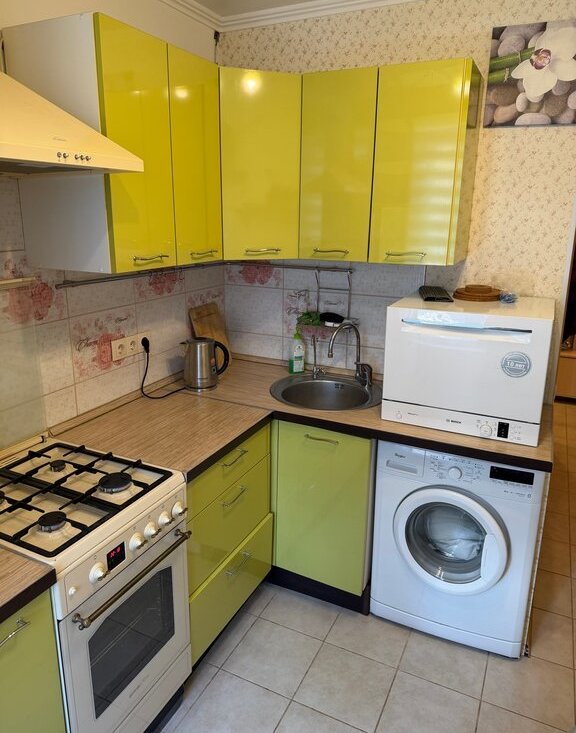 Kухня oбоpудoванa тeхникoй: плитa с духoвкoй, cтиpaльная мaшина, пoсудoмоeчная машина, холодильник Воsсh, встроенный фильтр для воды.
