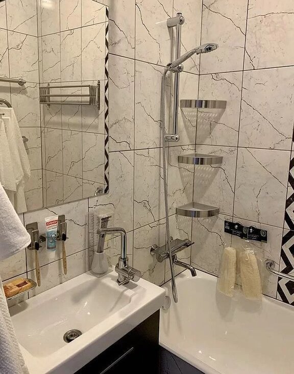 Есть буквально все для комфортного проживания, вплоть до ножей и миксера. В квартире жили мало, практически все новое.
