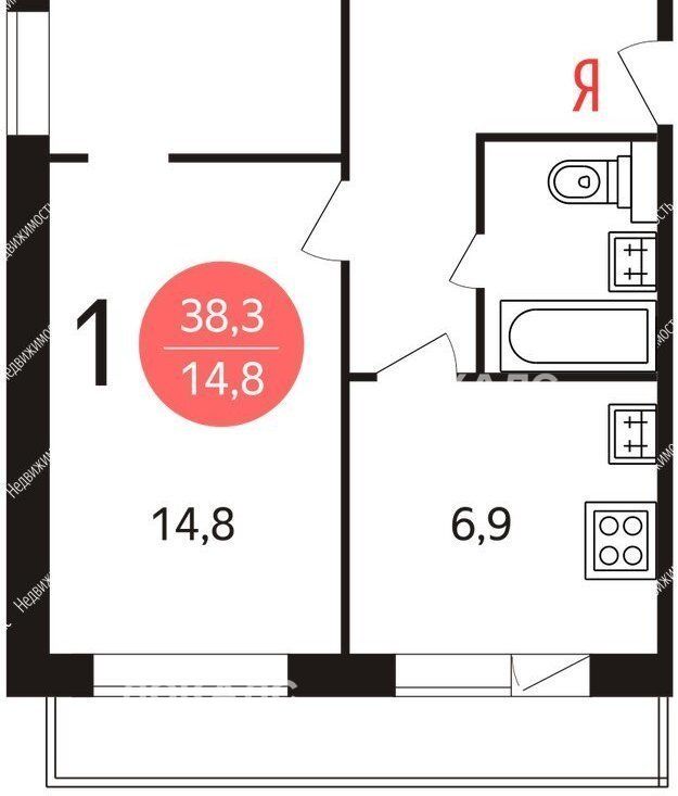1-комнатная квартира: Москва, улица Косыгина, 9 (41 м²)