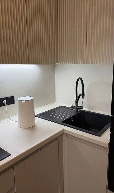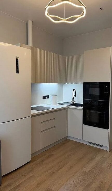 Просторная кухня площадью 14 м² оборудована современной техникой: холодильник, встроенная духовка, варочная панель, фильтр для воды, микроволновая печь и посудомоечная машина. Имеется стиральная и сушильная машина., кондиционер.В квартире выполнен свежий евро ремонт, комнаты изолированы, санузел совмещённый.Диван к кухне гостиной раскладной.