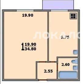 1-комнатная квартира: Москва, улица Куусинена, 6к11 (35 м²)