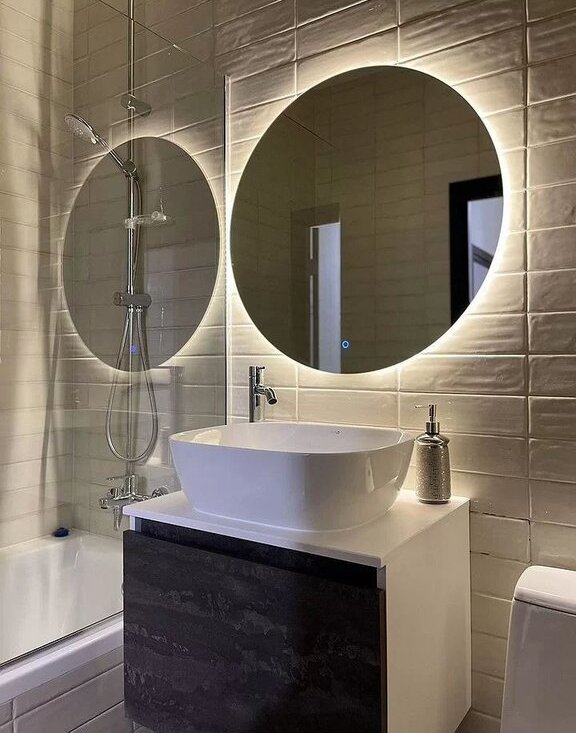 Стильная мебель, множество шкафов. Санузел: плитка до потолка, ванная и тропический душ.