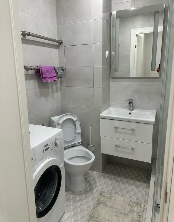 🛋️ Удобства: стиральная машина, духовая печь, микроволновая печь, холодильник, чайник, телевизор. Санузел совмещен