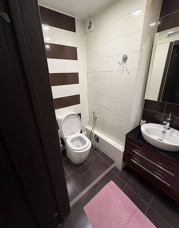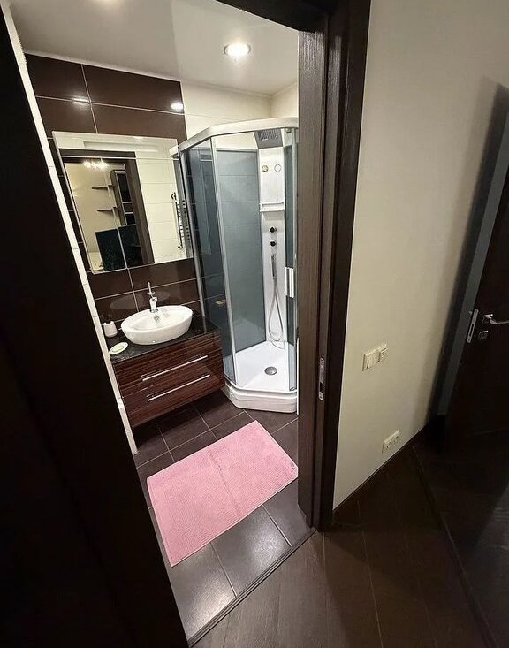 Ванная комната совмещённая, оборудована душевой кабиной и современной сантехникой. В квартире запрещено курение, но можно проживать с детьми. Животные не допускаются.