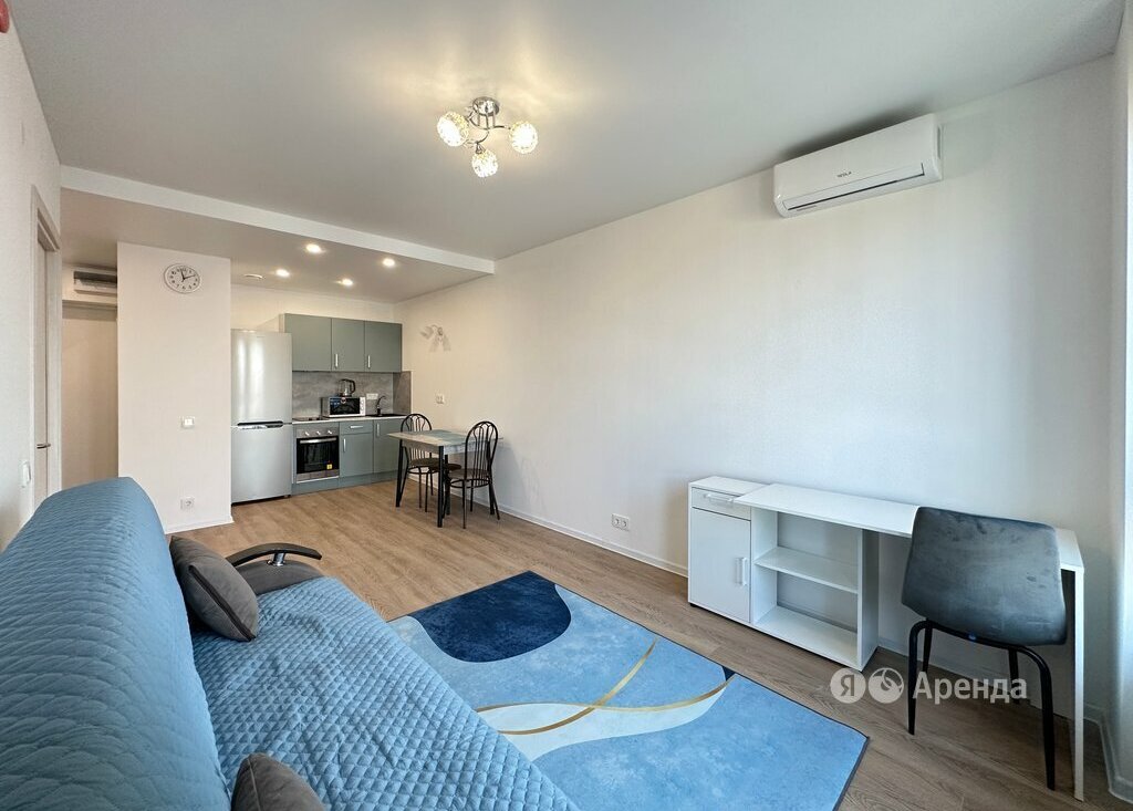 Сдаётся 1-комнатная квартира площадью 37 кв.м. с евроремонтом на 23 этаже в 33-этажном доме на срок от 11 месяцев. Из техники есть: