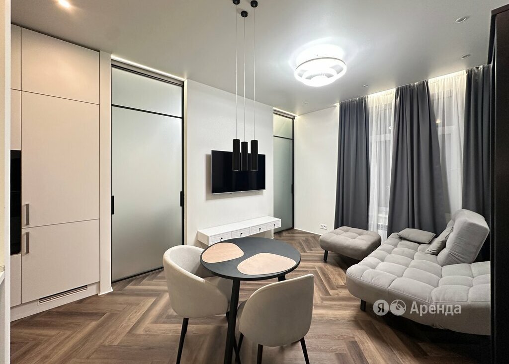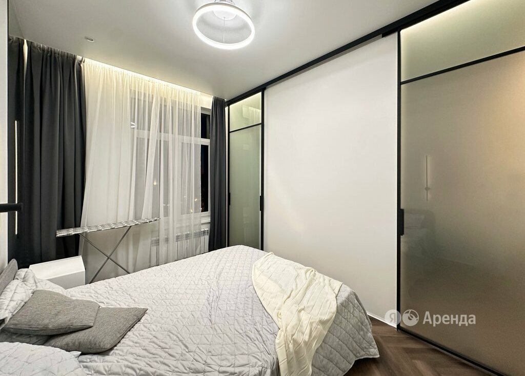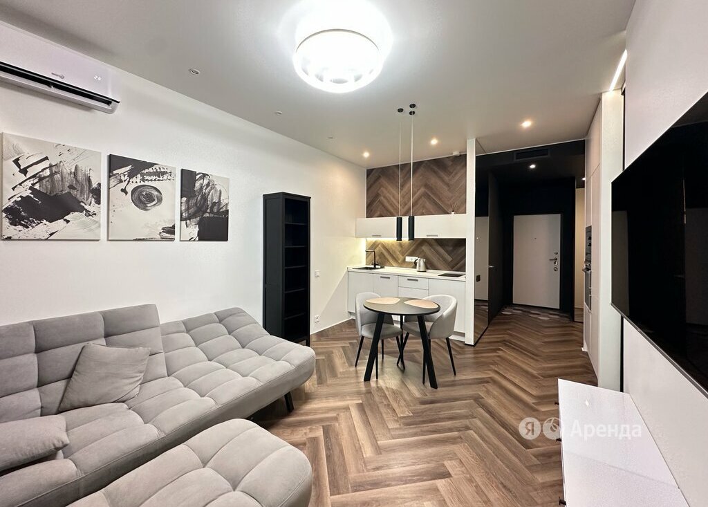 Сдаётся 1-комнатная квартира площадью 43 кв.м. с дизайнерским ремонтом на 12 этаже в 21-этажном доме на срок от 11 месяцев. Из техники есть: