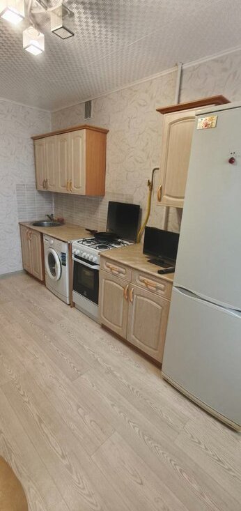 От дома до метро 10 мин. пешком. В квартире выполнили косметический ремонт , на кухне гарнитур - Холодильник, газ. Плита ,свч . Выход на застеленный балкон.