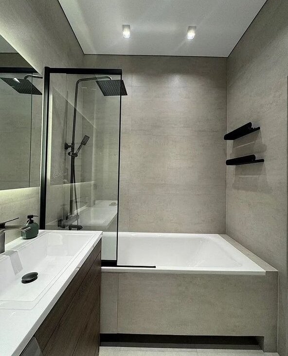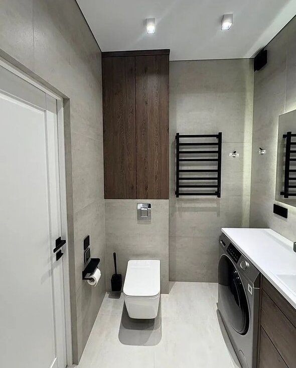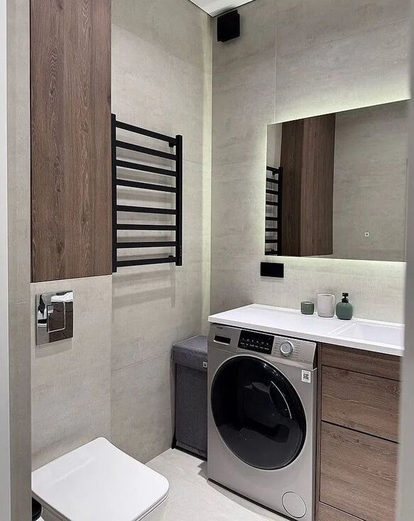Техника: холодильник, посудомоечная машина, духовой шкаф, микроволновая печь, вытяжка, варочная панель, стирально-сушильная машина, водонагреватель, кондиционер, телевизор, пылесос. Электрокарниз.