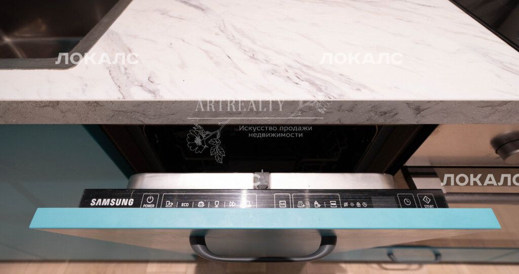 Большая Кухня-гостиная с выходом на просторную Лоджию оборудована всем необходимым: Встроенная посудомоечная машина, Индукционная поверхность, Вытяжка, Встроенный холодильник, Диван, ТВ и Кондиционер.