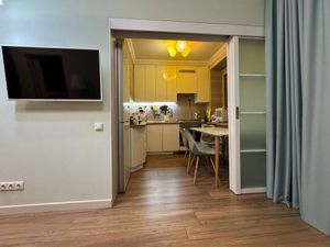 Сдаётся 1-комнатная квартира площадью 32 кв.м. с дизайнерским ремонтом на 1 этаже в 6-этажном доме на срок от 11 месяцев. Из техники есть: