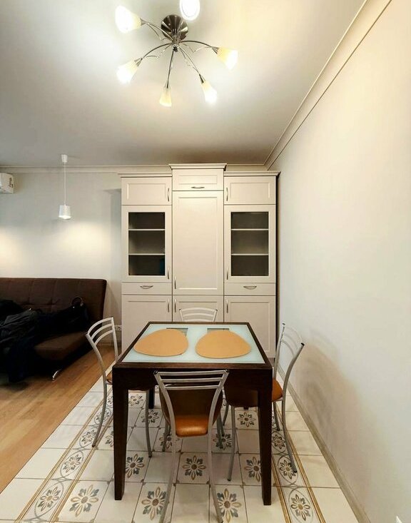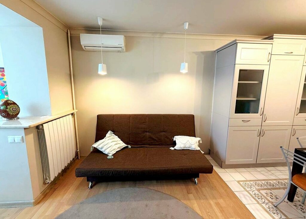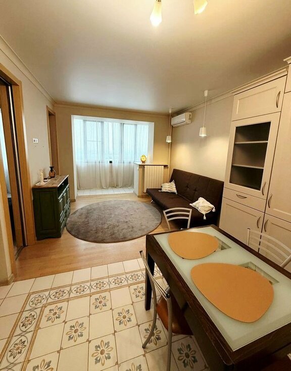 Дом кирпичный. Сдаётся еврооднушка без балкона. Совмещённая кухня-гостиная и изолированная спальня с раздвижные дверями. Квартира укомплектована необходимой мебелью и бытовой техникой. В наличии шкаф-купе,два шкафа у окон, комоды,диван,кровать. Оборудована гардеробная комната. Вся бытовая техника- кондиционер, ПММ, стир.машина,холодильник. Санузел совмещённый,душевая. Депозит можно разделить на 2 платежа. Оплата свет,вода.