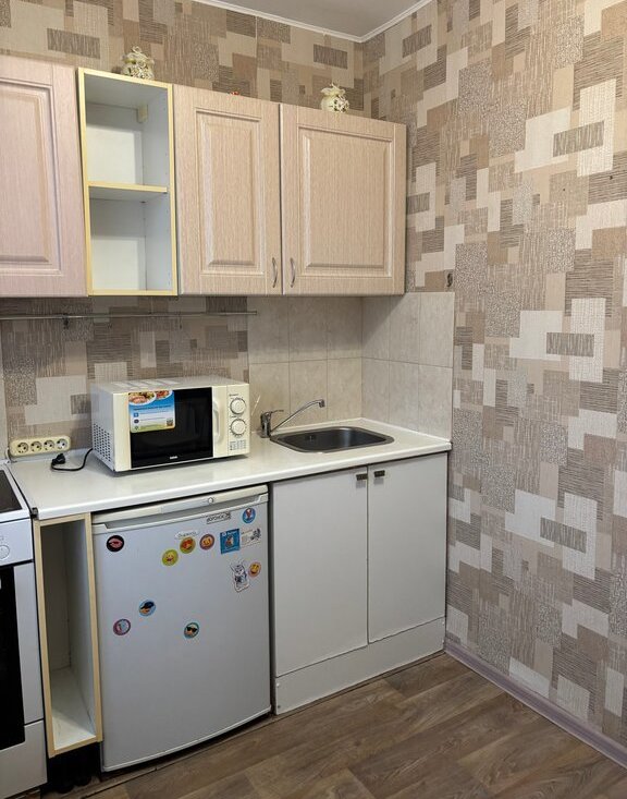 Квартира теплая, светлая в доме серии П44Т. Оборудована кухонным гарнитуром, холодильником, стеклокерамическая плита Bosch с духовкой, обеденным столом, стульями, шкафом в прихожей.