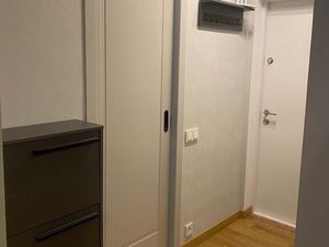 Квартира новая, чистая и имеет все необходимое для проживания. Полностью меблирована, кондиционер, посудомойка, стиральная машина с режимом сушки, ванная (180*80), теплые полы в ванной, духовка с функцией микроволновки, холодильник, индукционная плита, диван раскладной в гостиной, телевизор, шкаф большой в спальне (360), кровать с подъемным механизмом и ортопедическим матрасом 160*200.