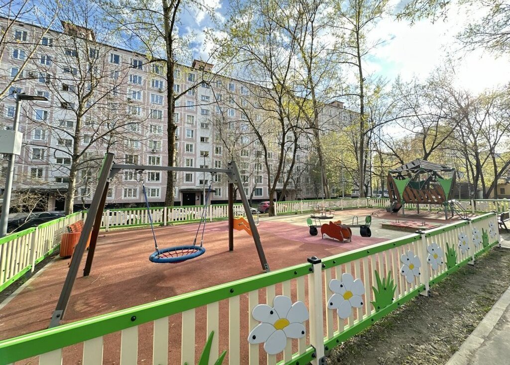 Во дворе большая детская площадка. Рядом поликлиника, детский сад, школы, кафе и рестораны,