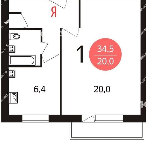 1-комнатная квартира: Москва, улица Усиевича, 25к2 (36.7 м²)