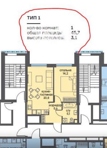 1-комнатная квартира: Москва, улица Василия Ланового, 5 (46 м²)