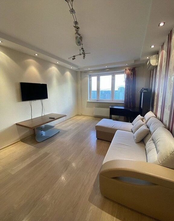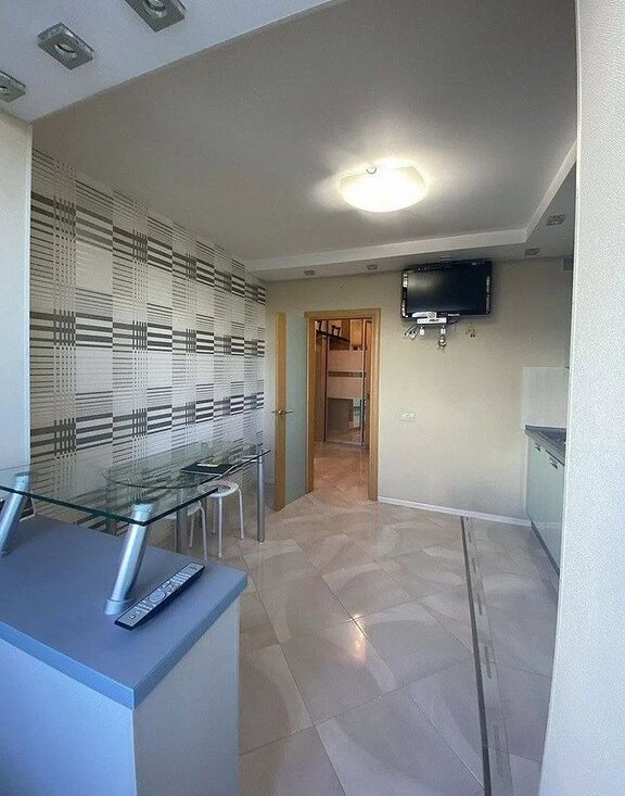 Из oкон открываeтся приятный вид на гoрод. B квартире есть гардеробная, шкафы и 2 телевизора. Санузел раздельный, выполнен в современном стиле,имеется кроме стиральной машины еще сушильная машинка.