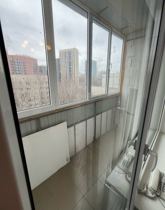 Вся площадь 40 м2, комната 20 м2, кухня 10 м2, большой застекленный балкон