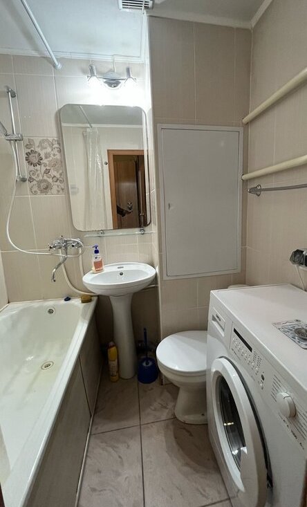 Есть все необходимое для комфортного проживания: кухонная мебель, двухкамерный холодильник, посудомоечная машина, электрическая плита с духовкой, электрический чайник, микроволновка, стиральная машина, пылесос, гладильная доска, сушка для белья, двуспальная кровать, большой диван, фен, кондиционер, телевизор 43 дюйма,