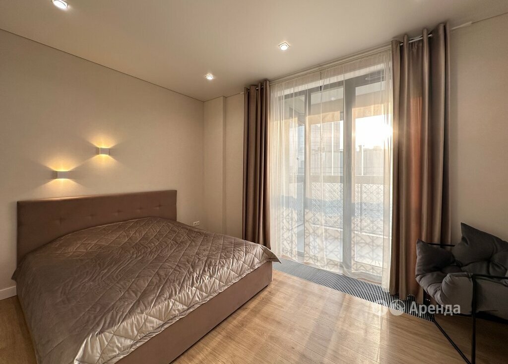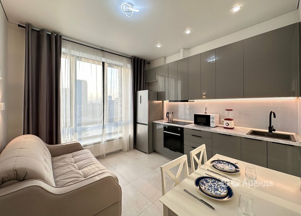 Сдаётся 1-комнатная квартира площадью 40 кв.м. с дизайнерским ремонтом на 9 этаже в 29-этажном доме на срок от 11 месяцев. Из техники есть: