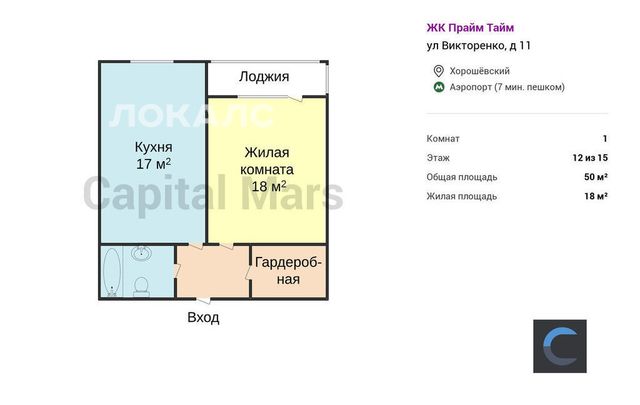 Предлагается 1-комнатная квартира общей площадью 50 м² в ЖК "Прайм Тайм" недалеко от станции метро "Аэропорт". Высокие потолки увеличивают пространство, наполняя его светом. Для комфортного проживания в наличии имеется вся необходимая мебель. Кухонный гарнитур оснащен посудомоечной машиной, духовой печью. Для удобства организована гардеробная комната. Из дополнительных преимуществ - наличие лоджии. Окна обращены во двор, обеспечивая тишину.