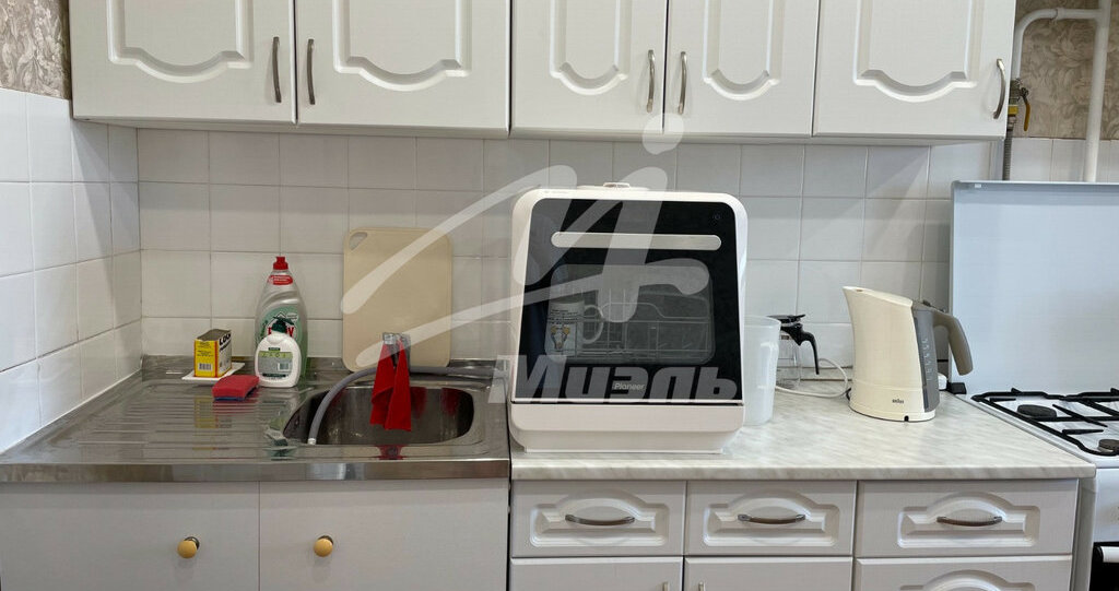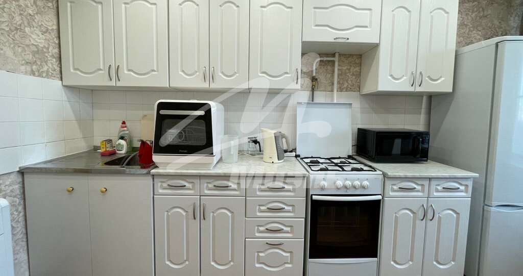 Импортная бытовая техника: 2-х камерный холодильник. Стиральная машина автомат. СВЧ. ПММ. На полу - ламинат+плитка.