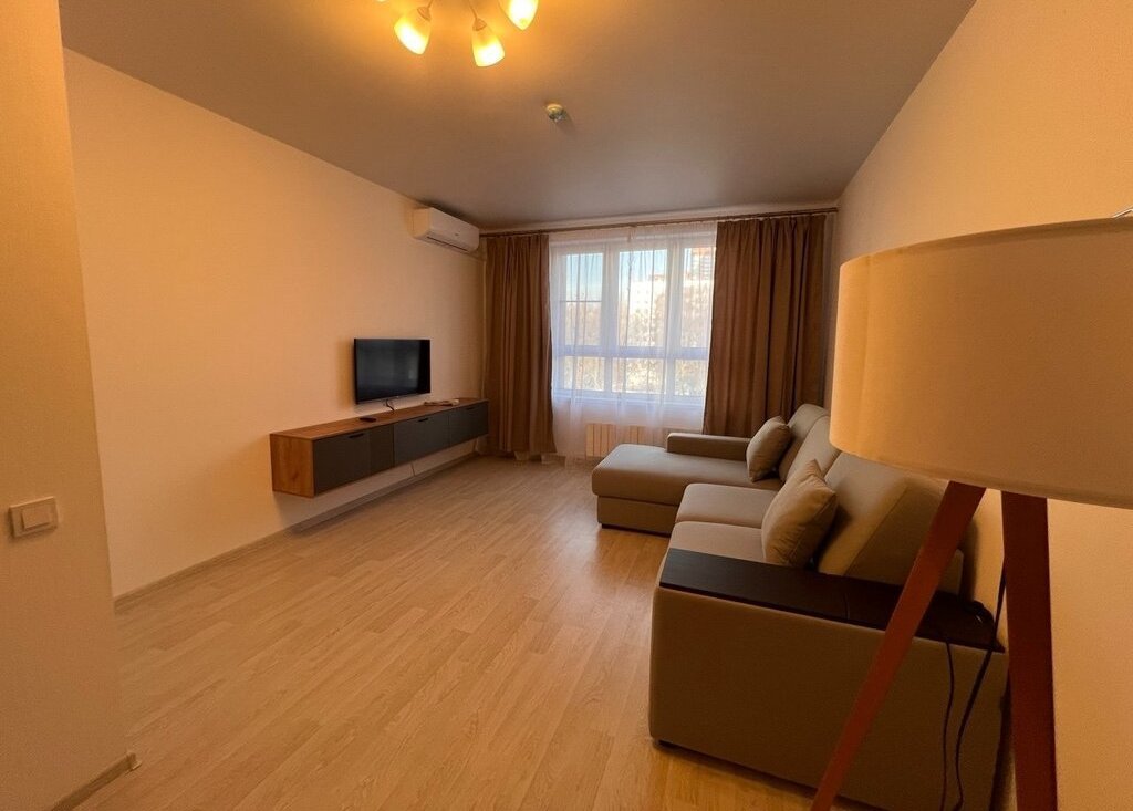 В одном из самых престижных районов Москвы на длительный срок сдается светлая однокомнатная квартира на комфортном 4-м эт. в новом доме переменной этажности. Общая площадь 42 кв.м., кухня 10,2 кв.м., совмещенный с/у 4 кв.м., из кухни выход на застекленную лоджию, просторная прихожая. Квартира полностью укомплектована: диван, вместительный шкаф для хранения одежды, телевизор (в комнате и на кухне), кондиционер, обеденная зона, кухонный гарнитур, плита и духовка электрические, вытяжка, свч, холодильник, стиральная и посудомоечная машины, мелкая бытовая техника и готова к заселению. Качественный ремонт. В доме есть подземный паркинг, при желании можно арендовать парковочное место. При входе в подъезд размещены помещения для хранения колясок, самокатов и велосипедов. Внутренняя часть двора организована по принципу «двор без машин». Сдается впервые. Очень доброжелательные хозяева. Спокойные интеллигентные соседи.
