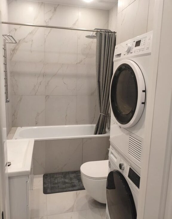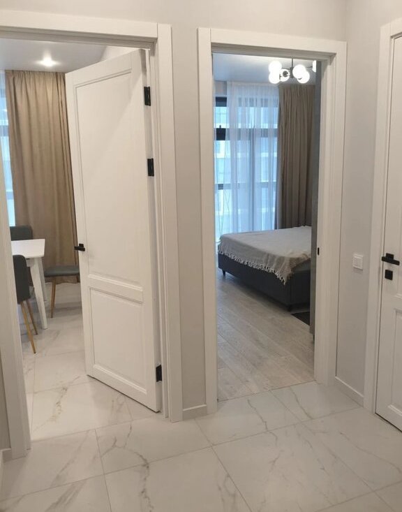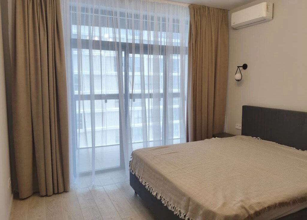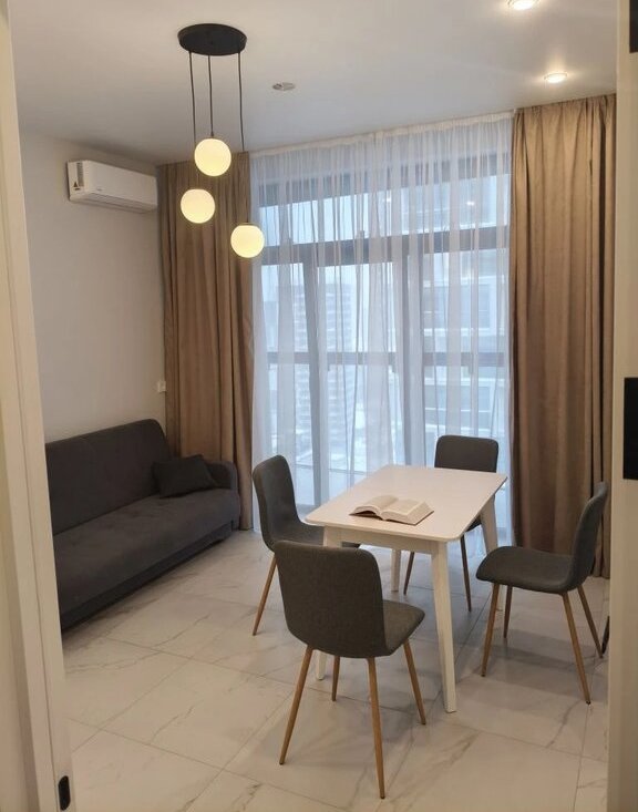 В квартире сделан качественный ремонт в скандинавском минимализме, она полностью меблирована и оснащена всей необходимой техникой: холодильник, посудомоечная и стиральная машины, два кондиционера (в гостиной и спальне). Планировка включает совмещенный санузел с ванной. Из окон открывается вид во двор, поэтому в квартире тихо и спокойно. Для вашего удобства в доме есть мусоропровод и высокоскоростной интернет.